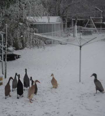 Later in the morning, I head outside and take the ducks some grain. Watch them run up to me and eat from my hands. Then I hunt up some eggs, it's like an Easter Egg hunt every morning. Where did they hide them today? I know the "normal" hiding places, but they always find new ones.